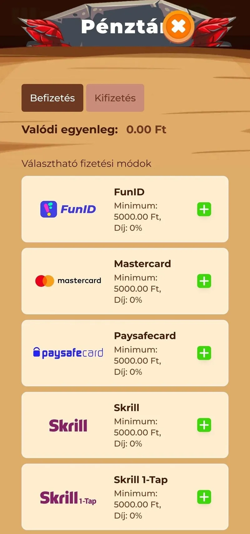 JátszanMobilos befizetés és kifizetés